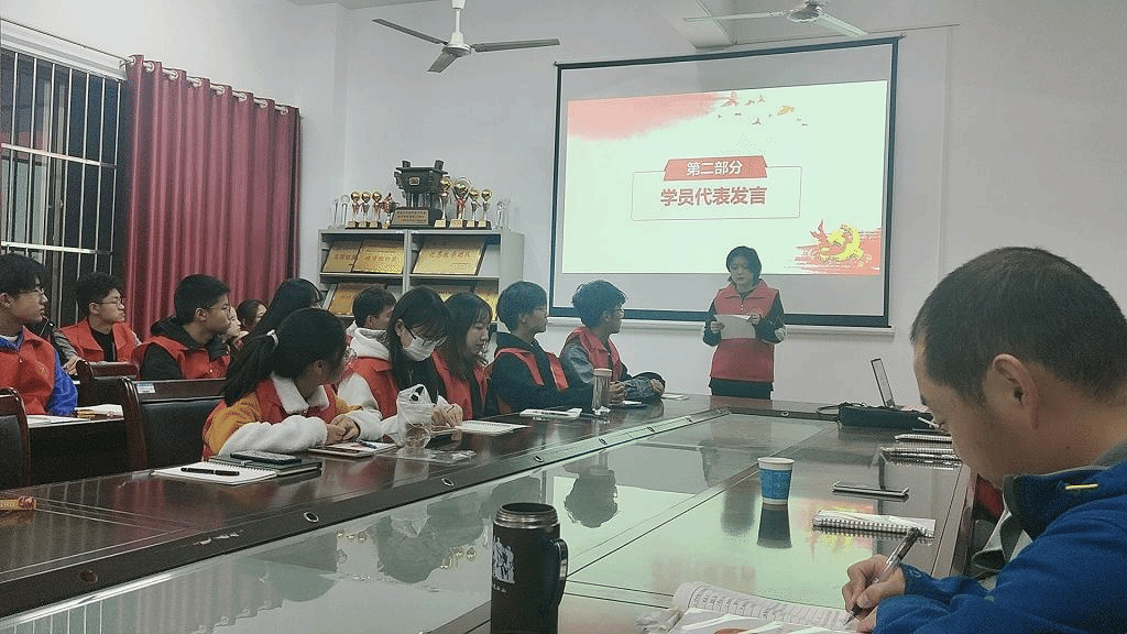 紧接着由指导老师致辞,周浩老师向青马班的学员普及了马克思主义中国化的理论成果及习近平新时代中国特色社会主义思想,他特别强调青马班的学员要牢记使命,明确职责,成为一名合格的社会主义事业的接班人。而高格老师就青马班往后的工作开展做出了一个大致的安排,另一方面她也对青马班的学员提出了明确性的要求,她要求每位学员必须严格遵守培训班的规章制度,准时到课,严格请假。
